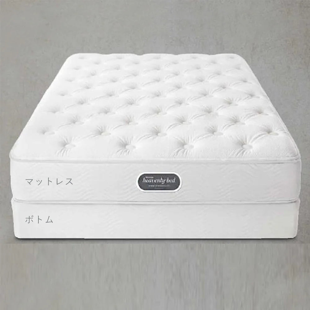 ※画像はイメージです。写真のヘッドボードとコンフォーター・スカートは付きません。SからDサイズまではボトムは1枚となります。QとKサイズのみボトムは2枚になります。QとKサイズの1枚マットレスが搬入出来ない場合は、マットレスの2分割仕様も製造可能です。あらかじめエレベーター・階段のサイズをご確認ください。